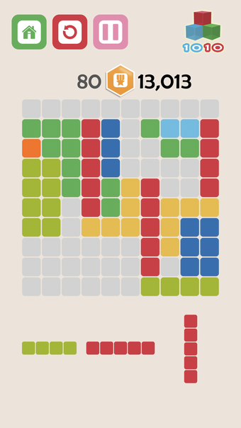 في 1010 ، يتعين على اللاعبين سحب وإسقاط الكتل على اللوحة ، بهدف إنشاء خطوط كاملة من الطوب أفقياً وعمودياً. مع تقدم اللعبة ، يزداد التحدي حيث يجب على اللاعبين وضع الكتل المعطاة بشكل استراتيجي لتجنب نفاد المساحة على اللوحة.